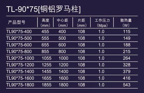 名称:铜铝复合散热器系列90x75罗马柱散热器
